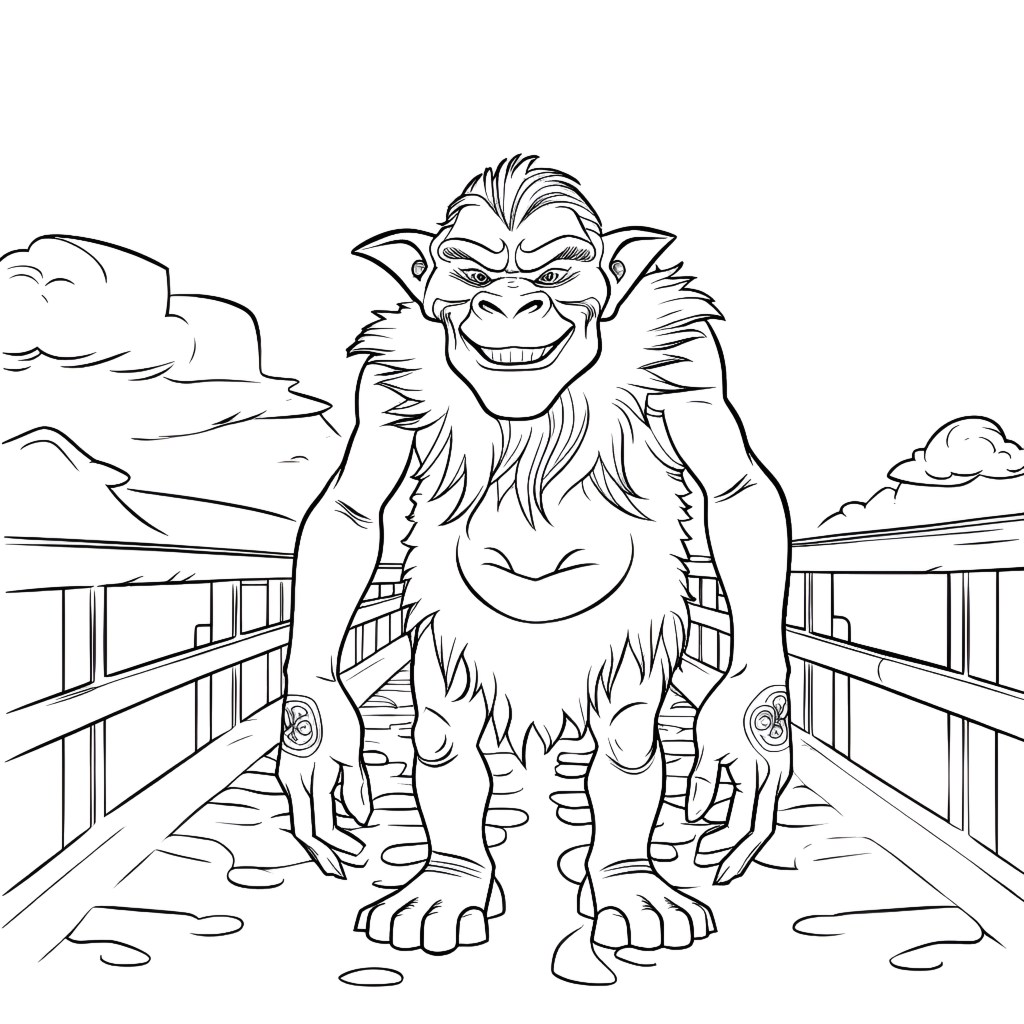 Tanjin guards the bridge over the Great River of Dreams. He used to work at the castle for the King. Whenever the King would send his army somewhere and they needed to knock down a wall or a door they would ask Tanjin to help them. Then one day the King asked Tanjin to knock down a big tree. It was the biggest tree in all the land. Tanjin liked trees and didn’t want to hurt it by knocking it down so he refused. The king was very angry and sent Tanjin to guard the bridge and challenge all who want to cross.